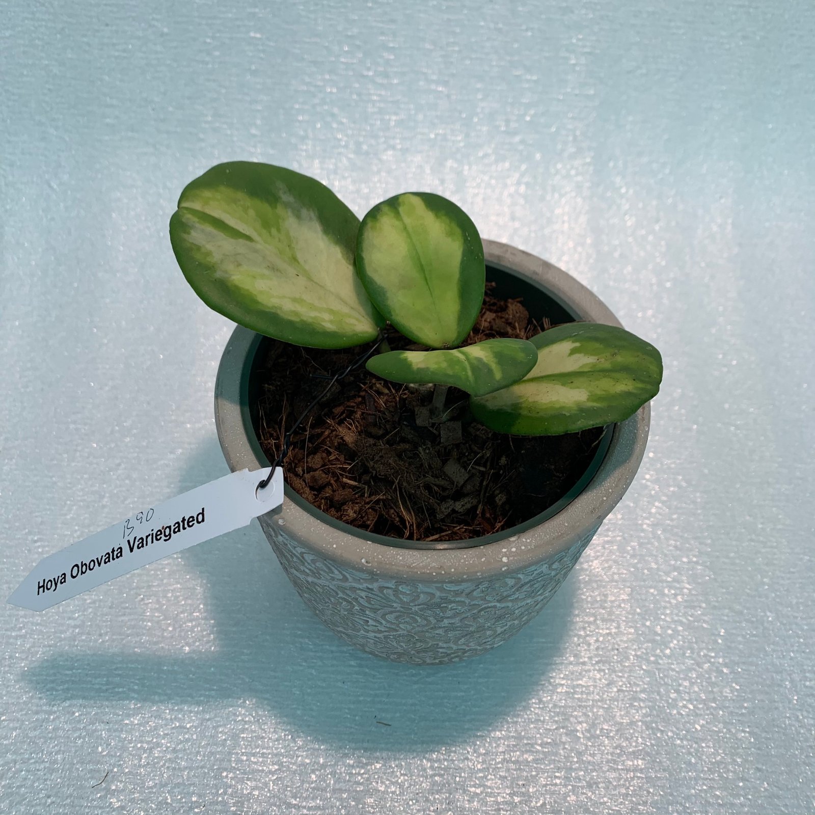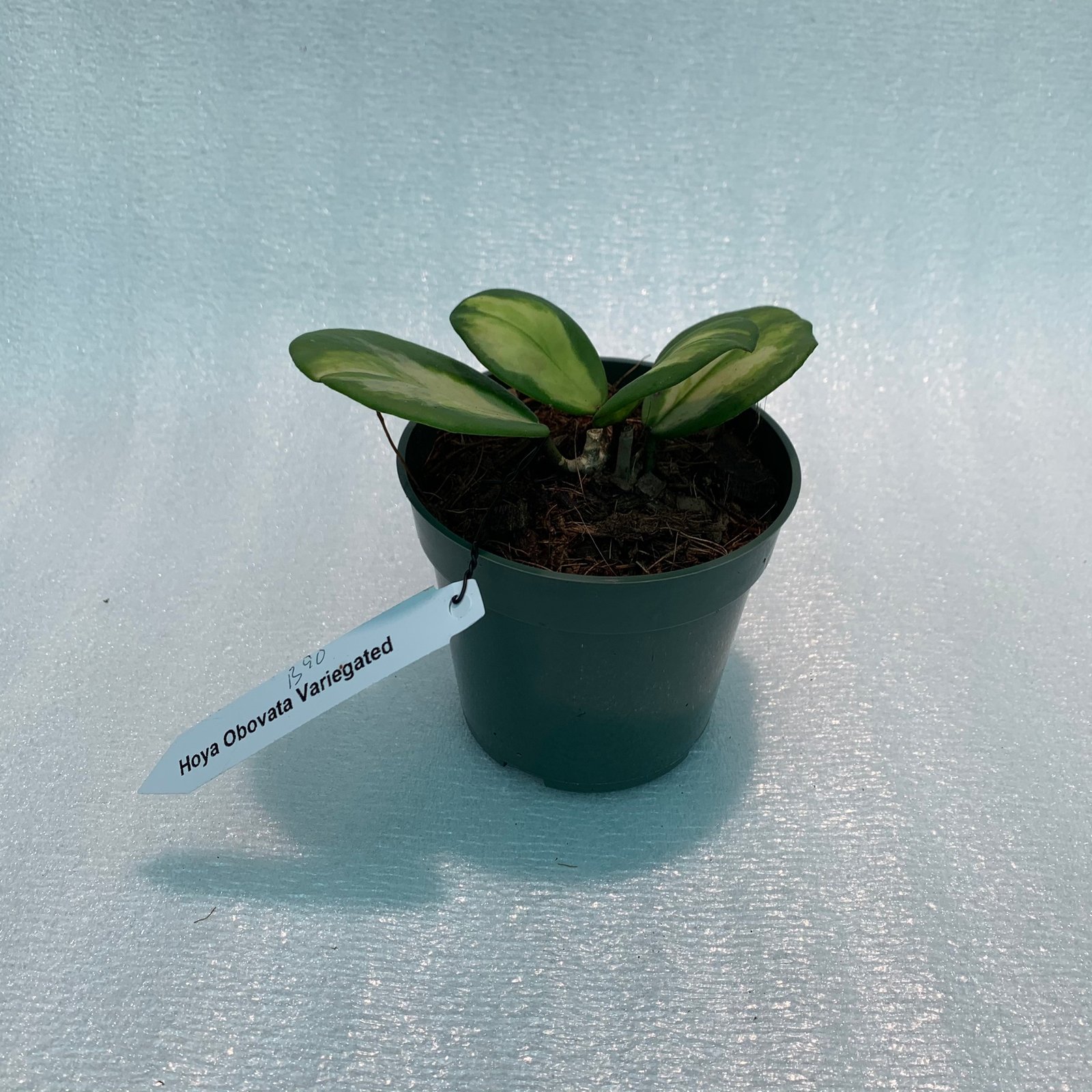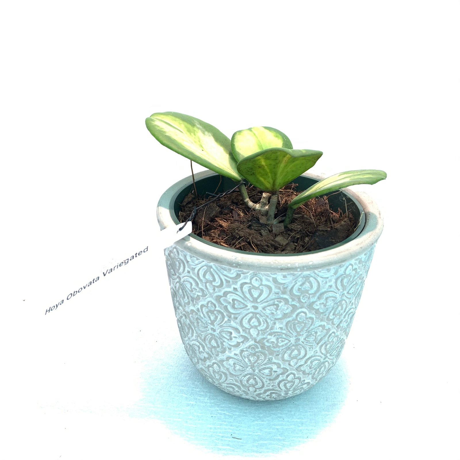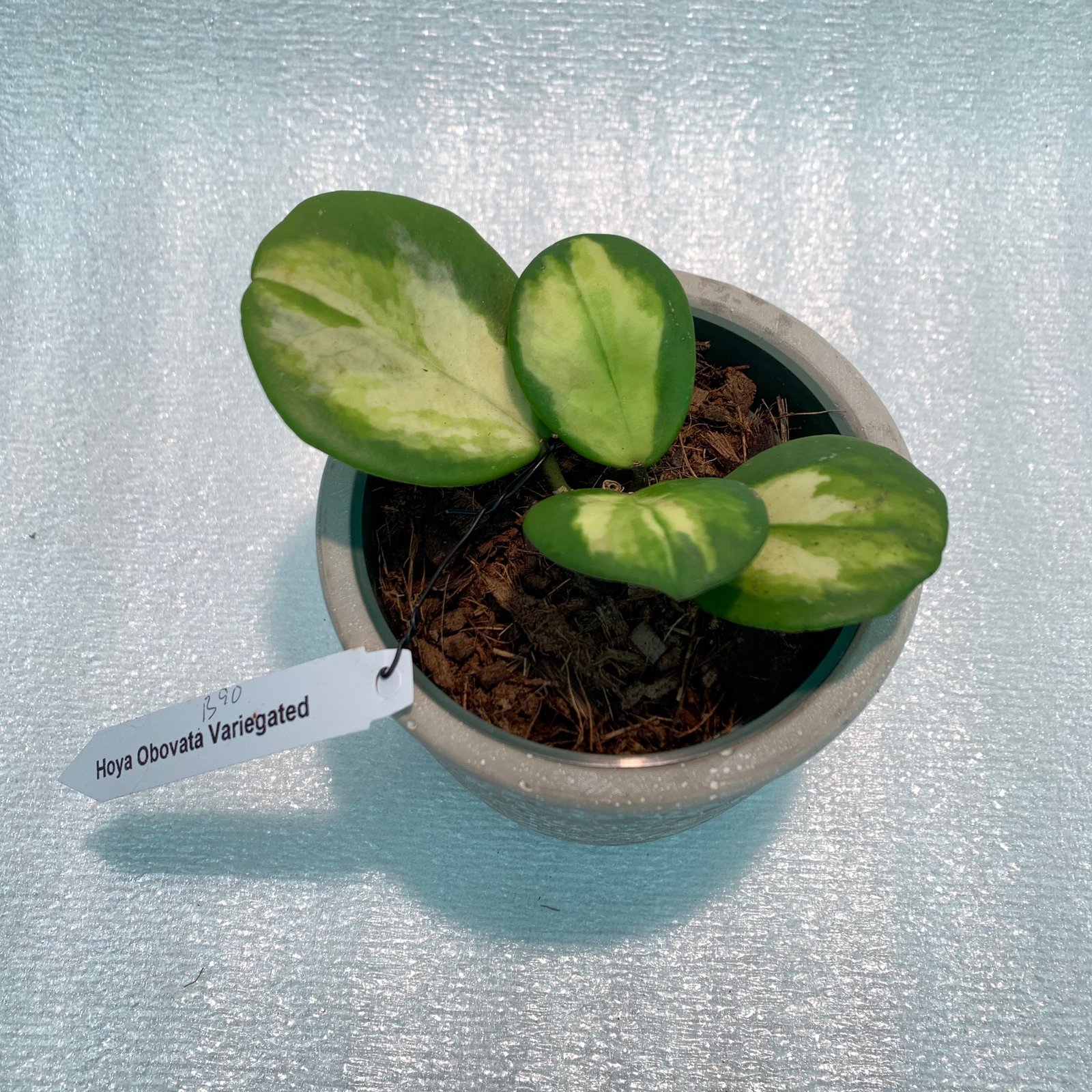 Hoya Obovata Varigata is the ultimate collector’s Hoya. Known for it’s lovely round waxy leaves and yellow variegation down the midrib of the leaves