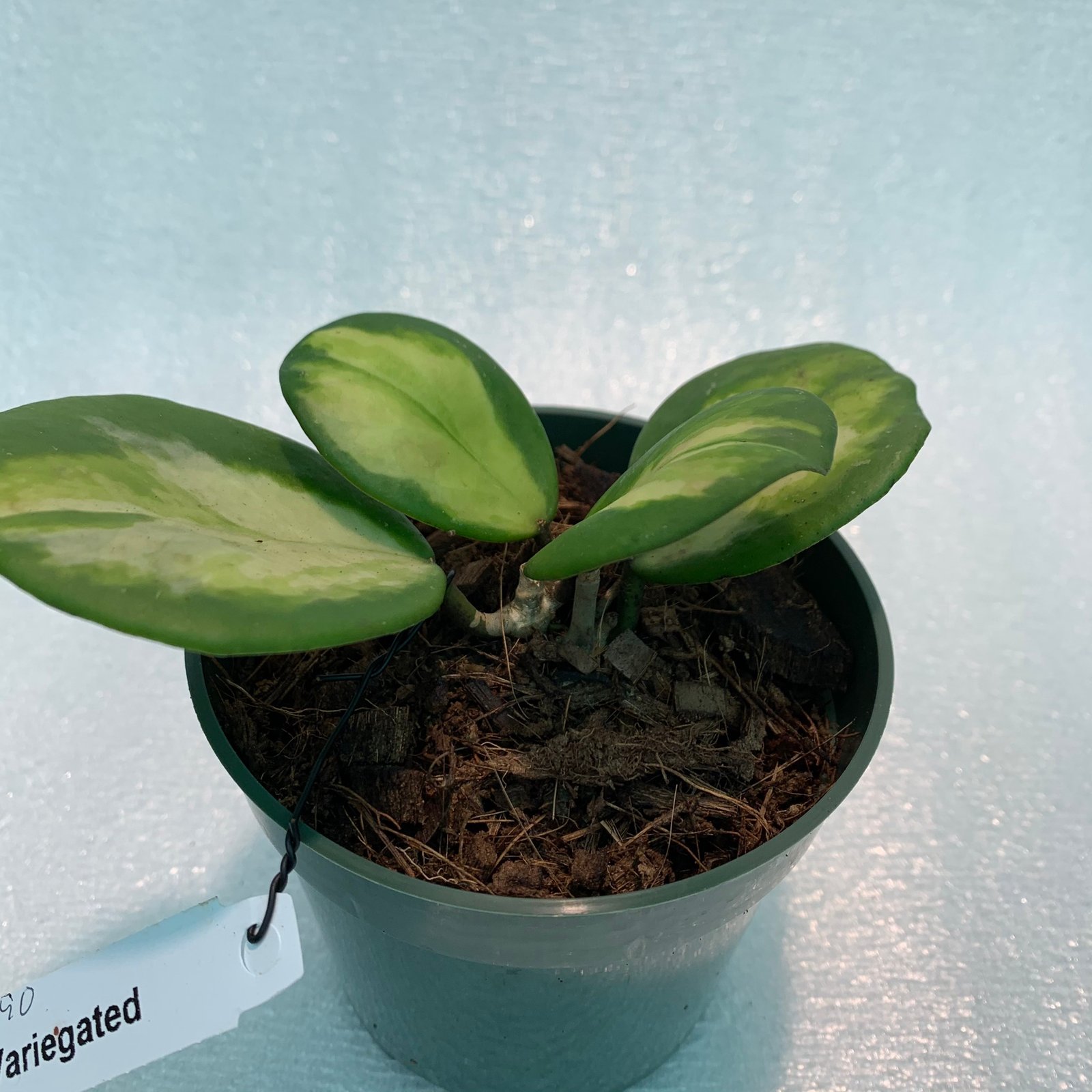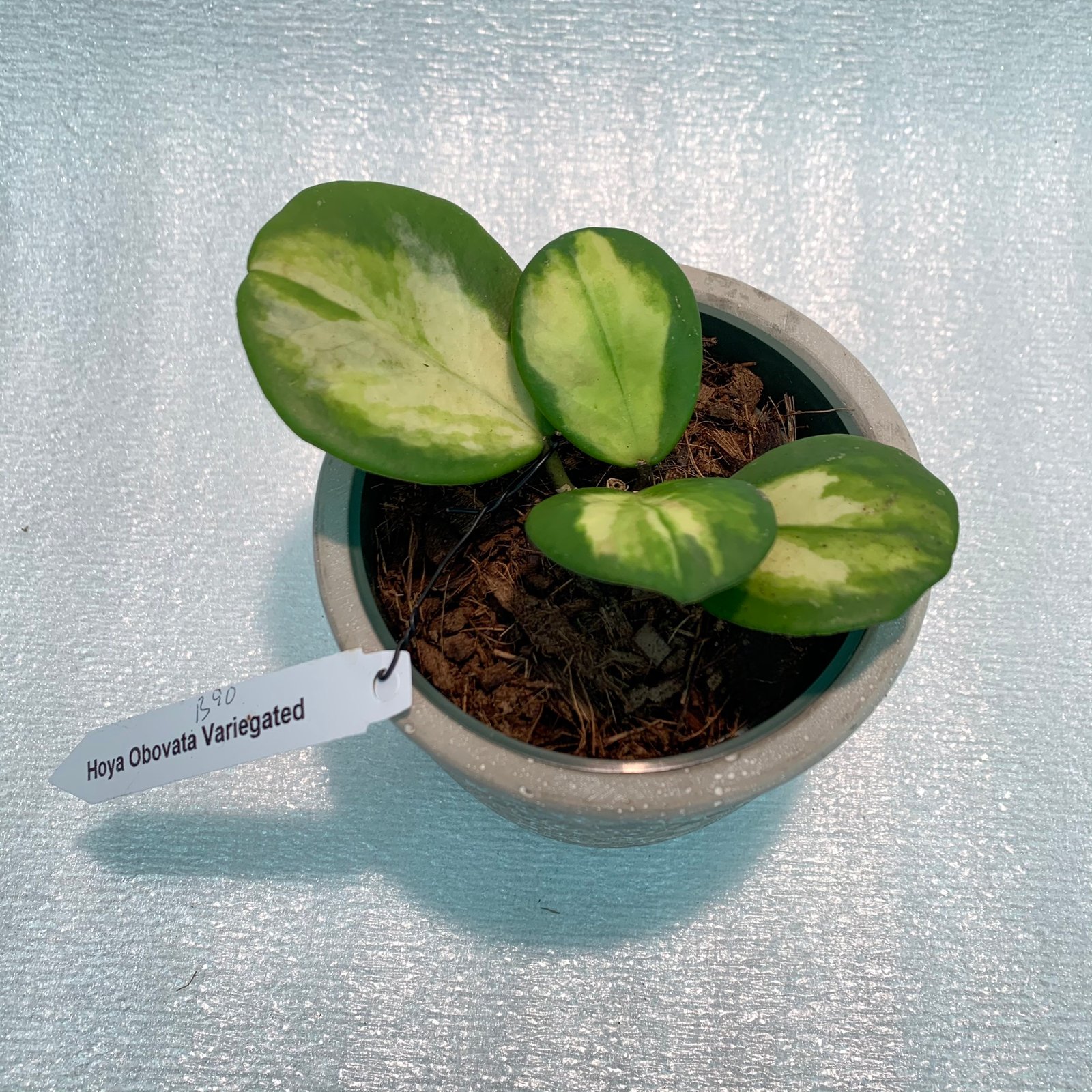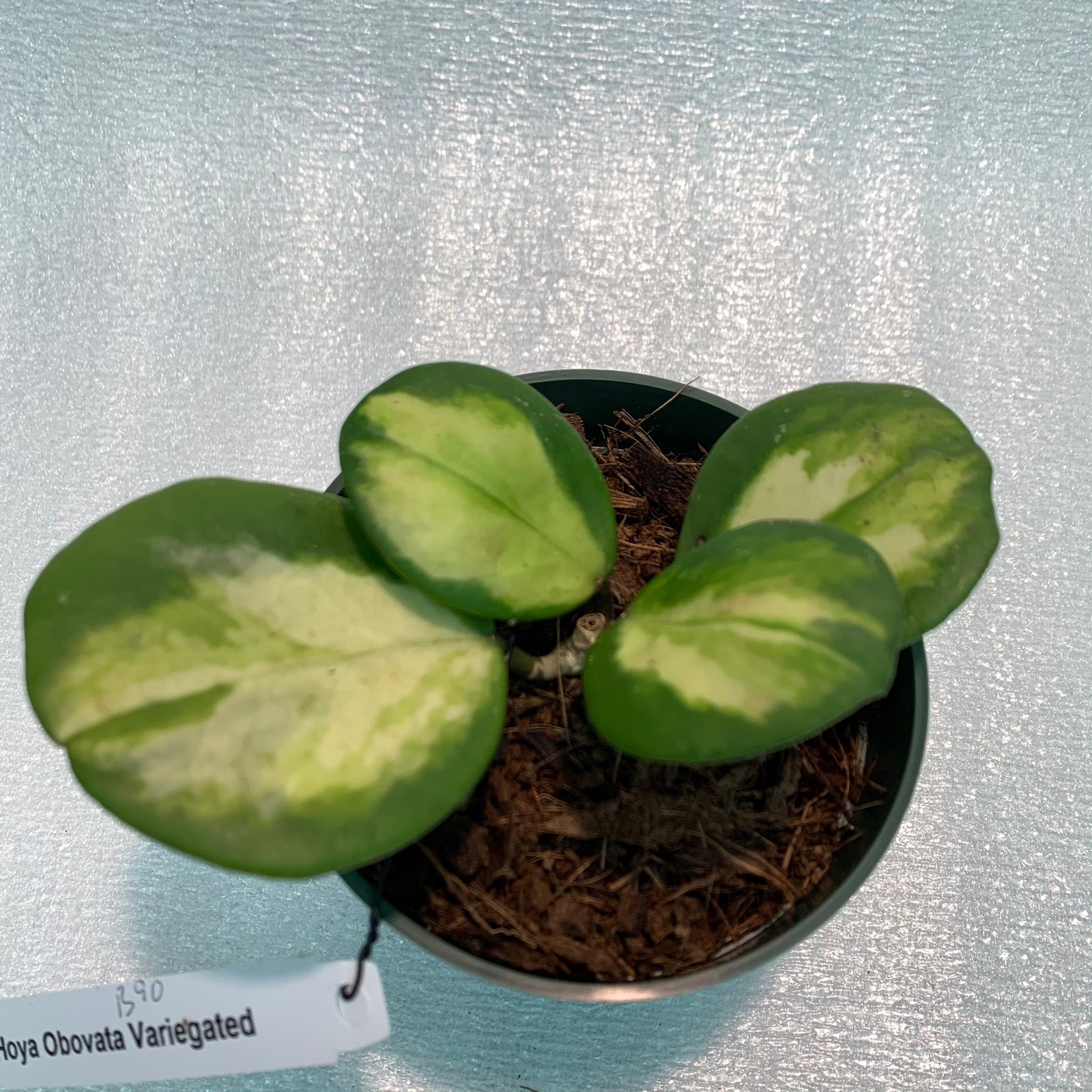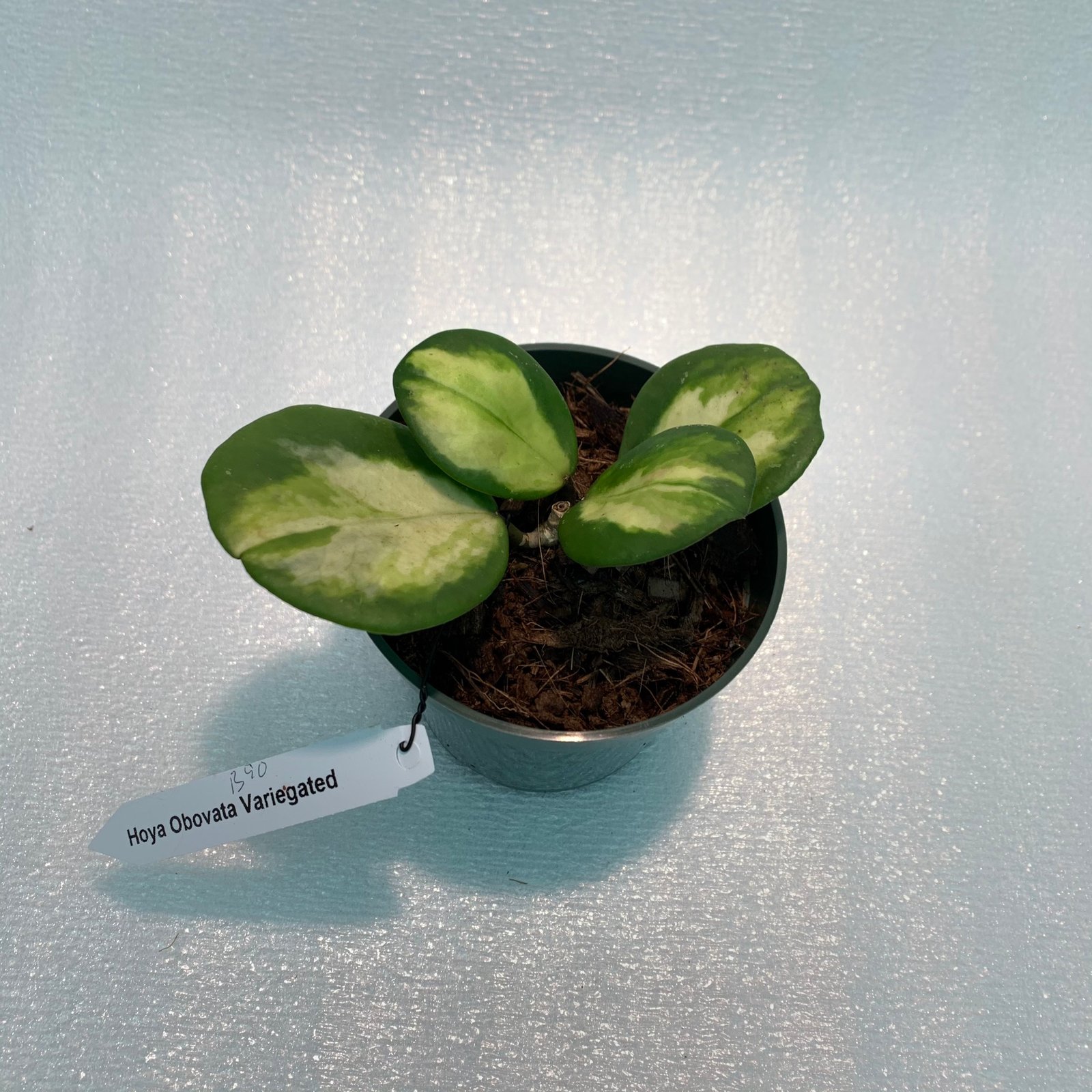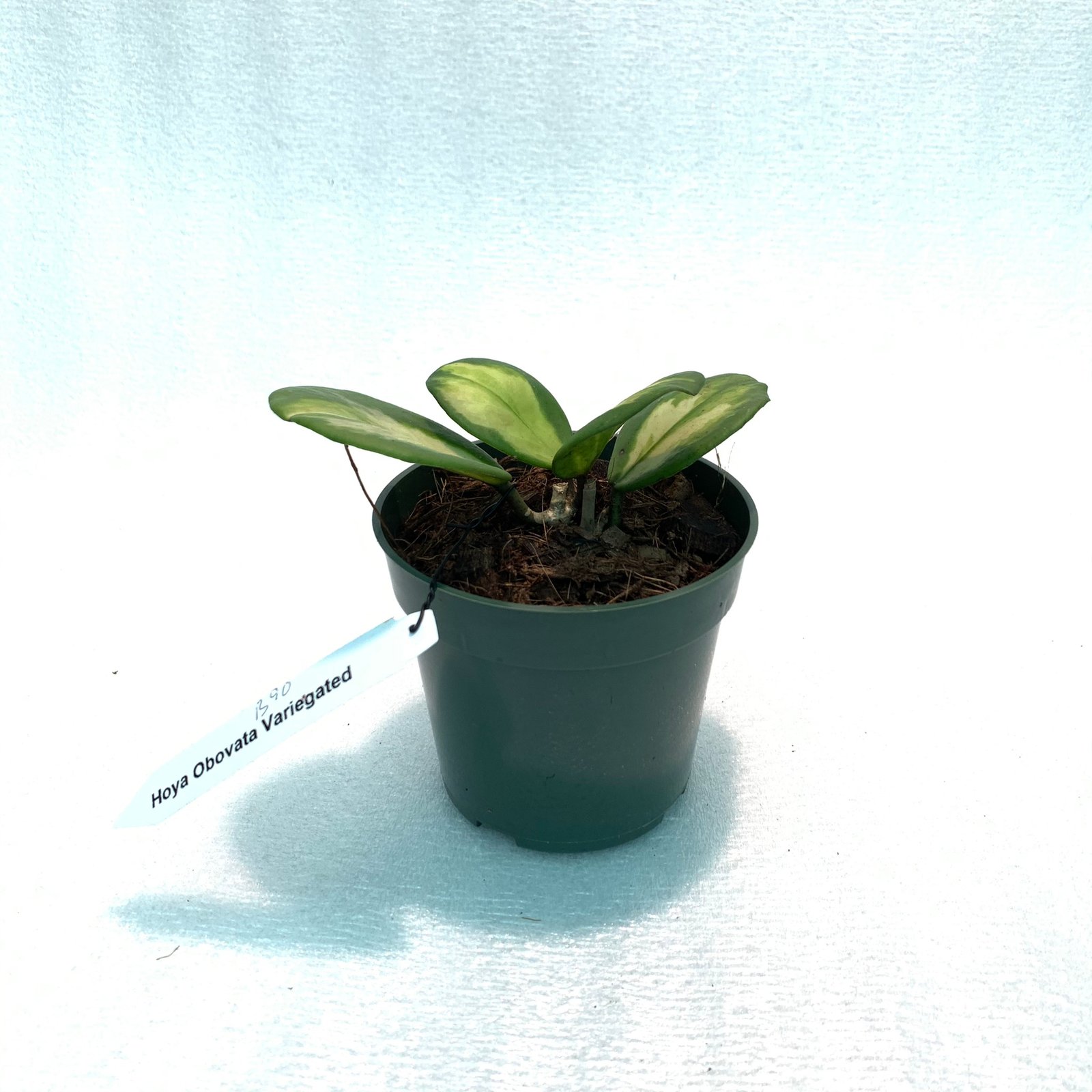 Hoya Obovata Varigata is the ultimate collector’s Hoya. Known for it’s lovely round waxy leaves and yellow variegation down the midrib of the leaves