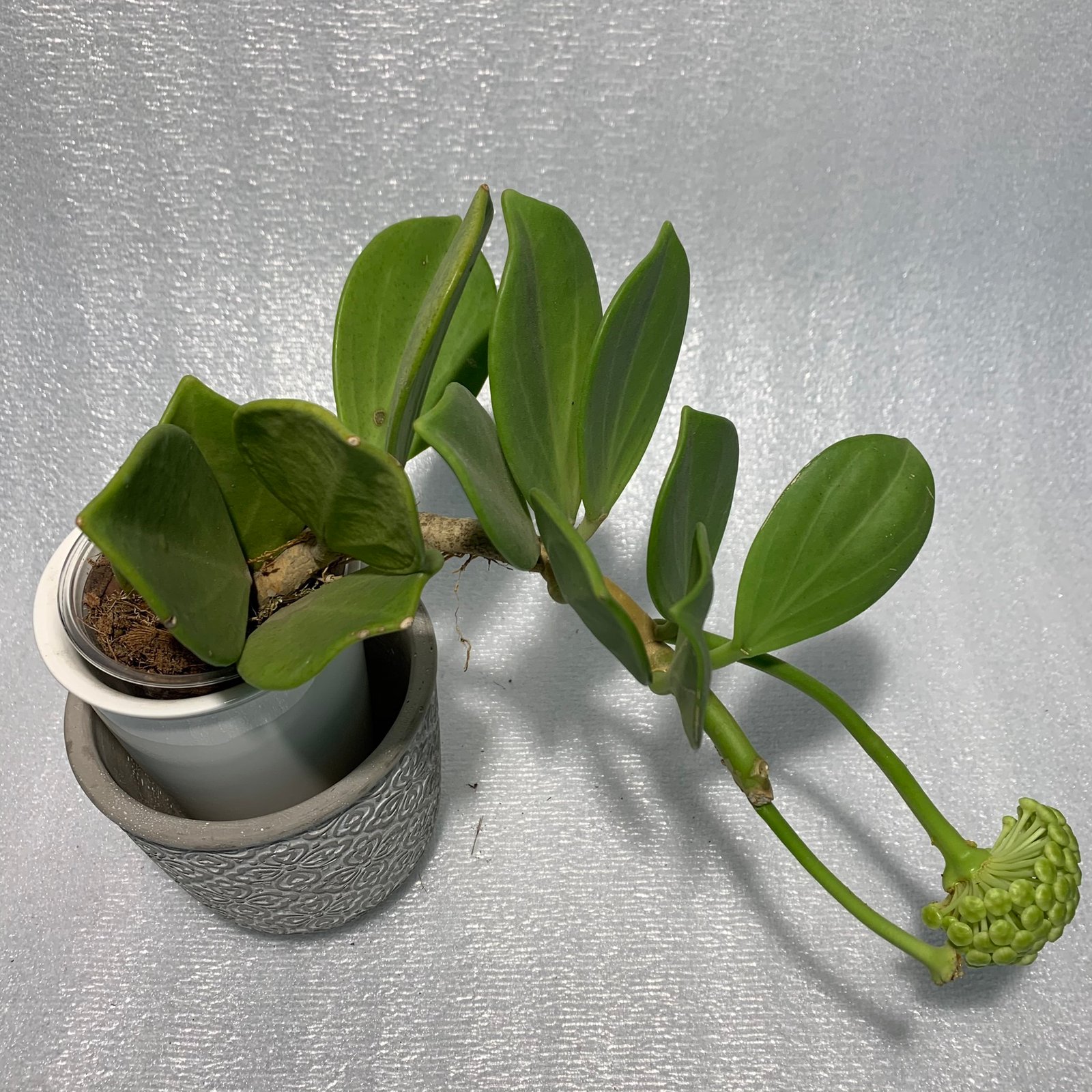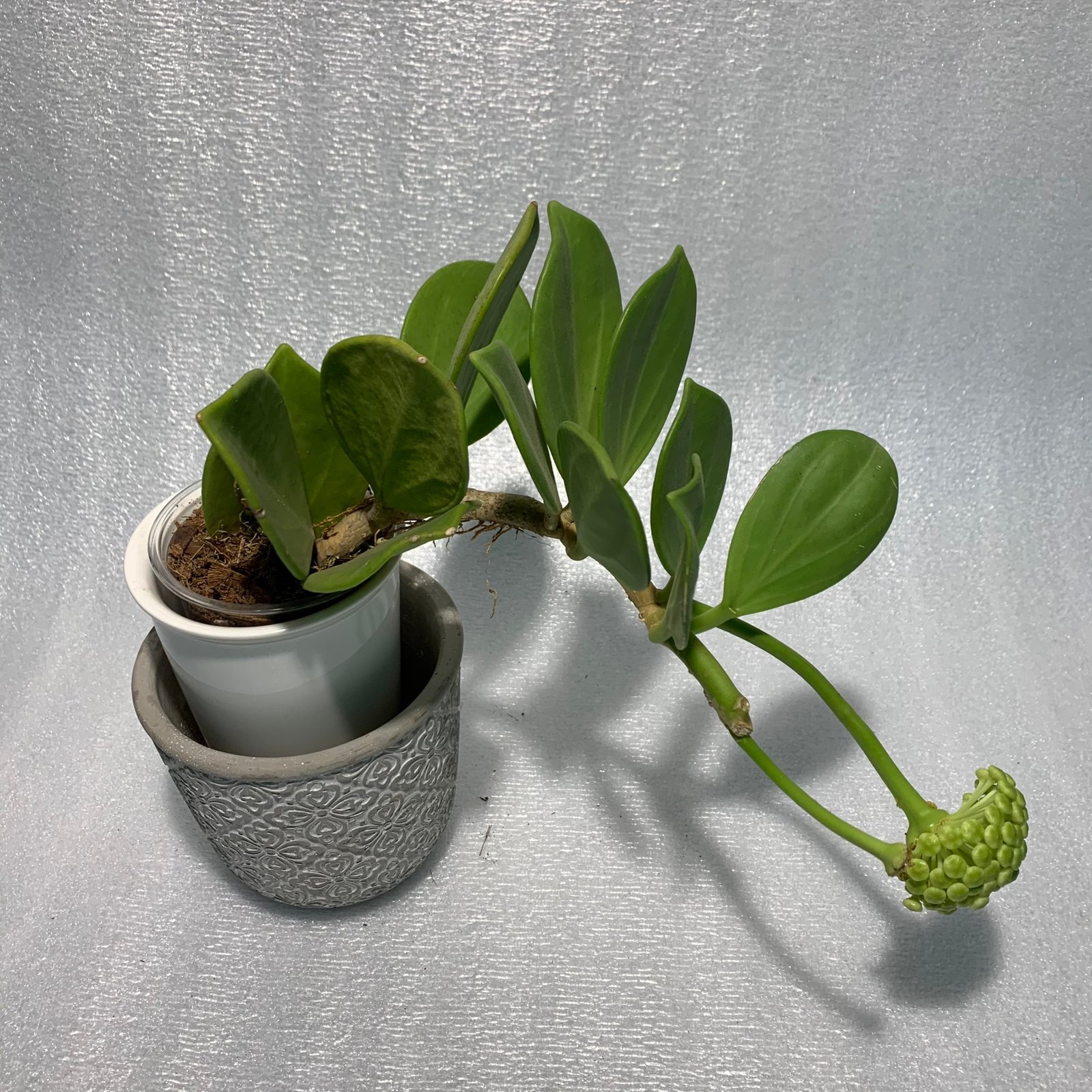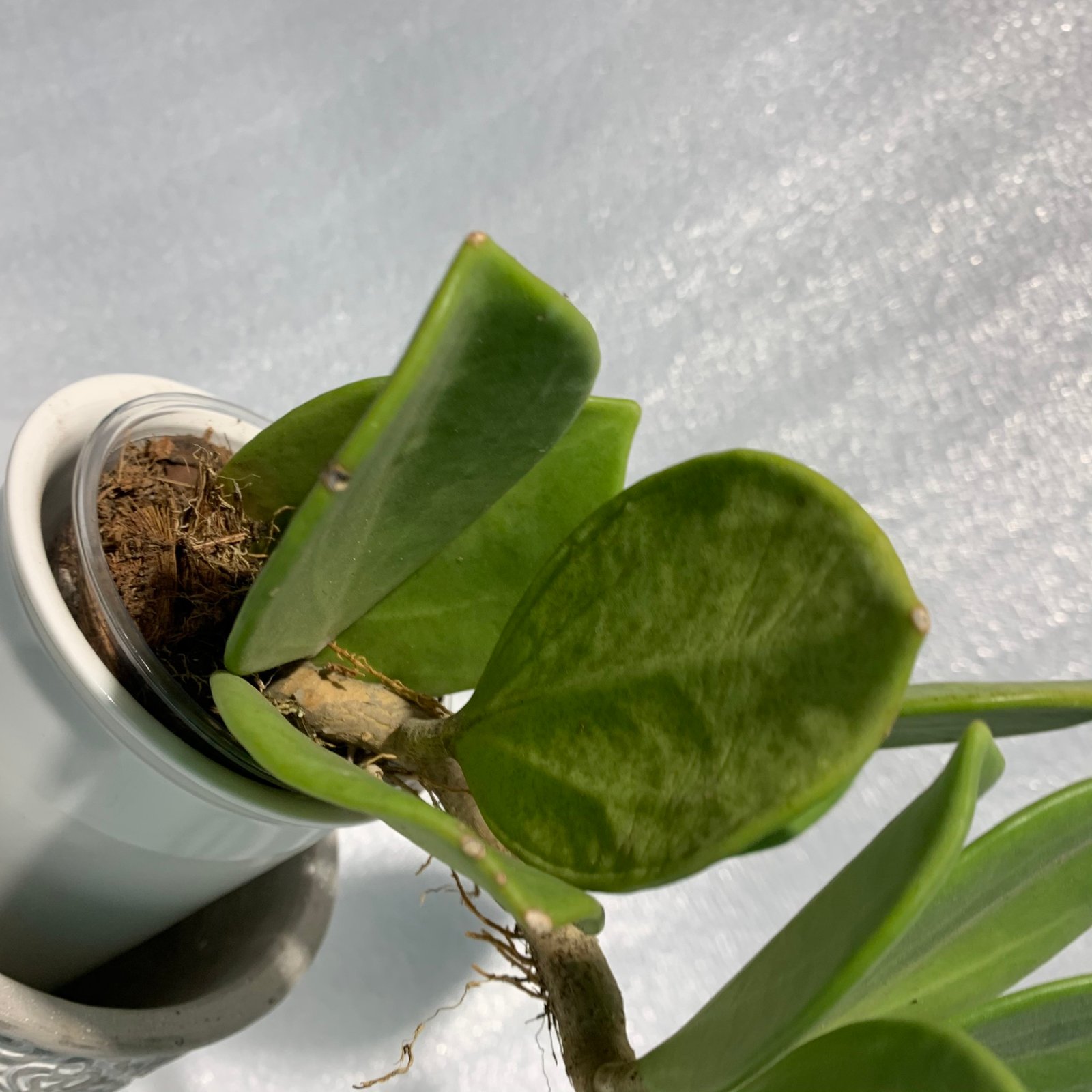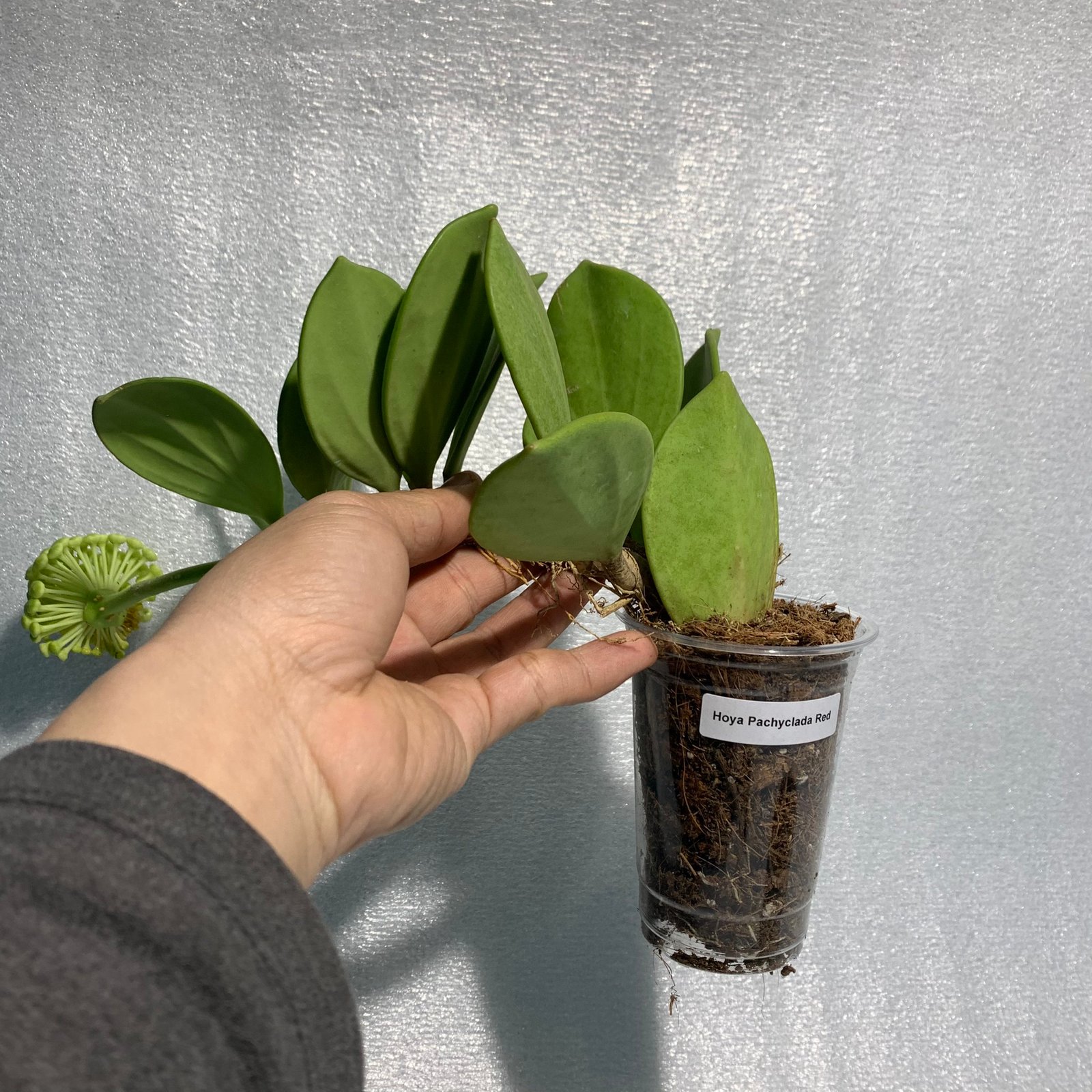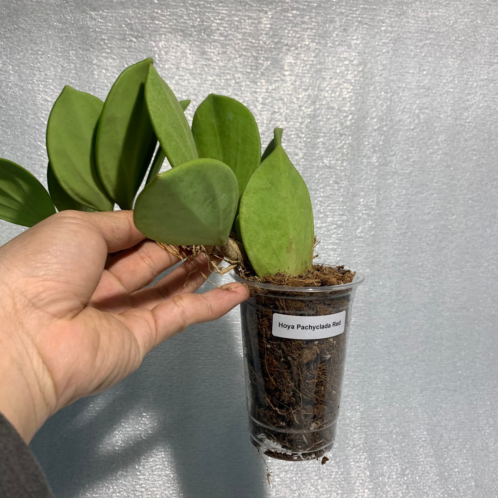 Hoya Pachyclada is a slow growing, rare Hoya with short, dense stems and thick leaves. The lush green leaves are succulent with a tinge of red. This Hoya prefers bright light and lots of water, but let the soil dry out between waterings.