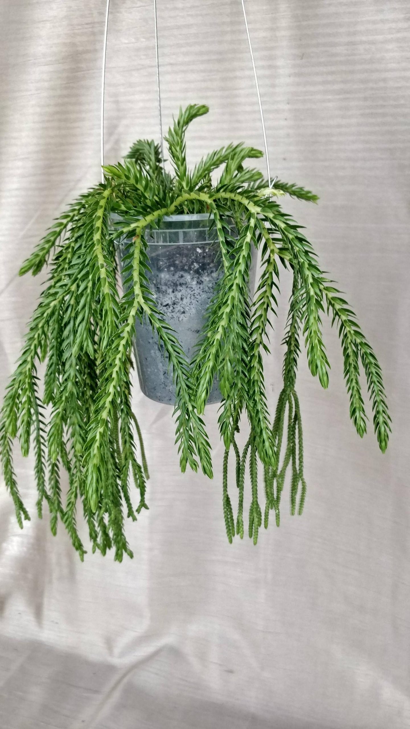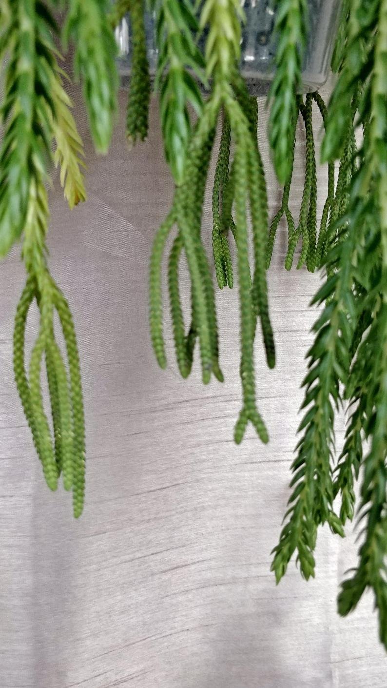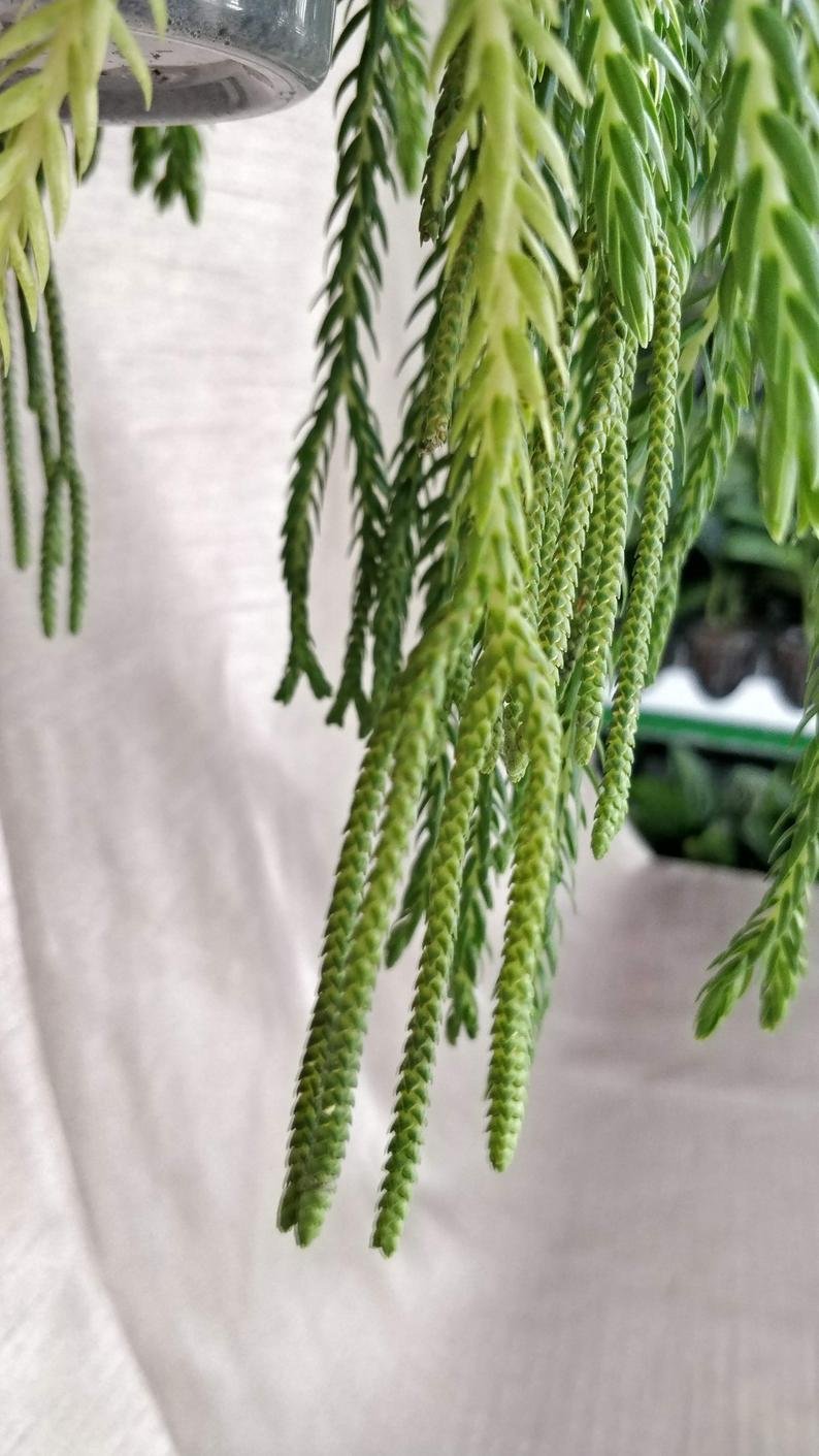 Huperzia Phlegmaria has tiny leaves growing on forked stems which can be as long as 80 cm. The stems grow from a single point from where they hang down towards the ground. This species is an epiphyte that normally grows on trees in its natural habitat so is ideally suited to cultivation in a hanging pot.