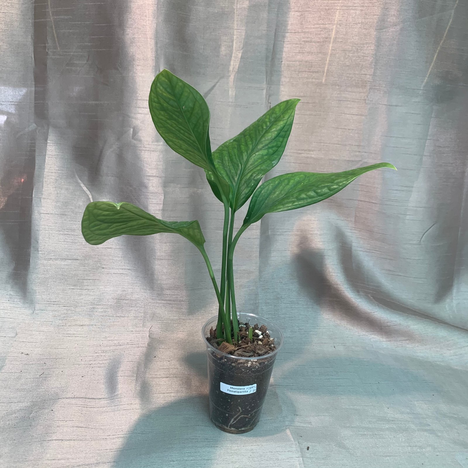 Monstera Pinnatipartita is a rare evergreen and beautiful climbing plant originally from South America that looks similar to Monstera Deliciosa. It has divided leaves when it matures and produces white waxy flowers that along with its aerial roots, make it look wildly.