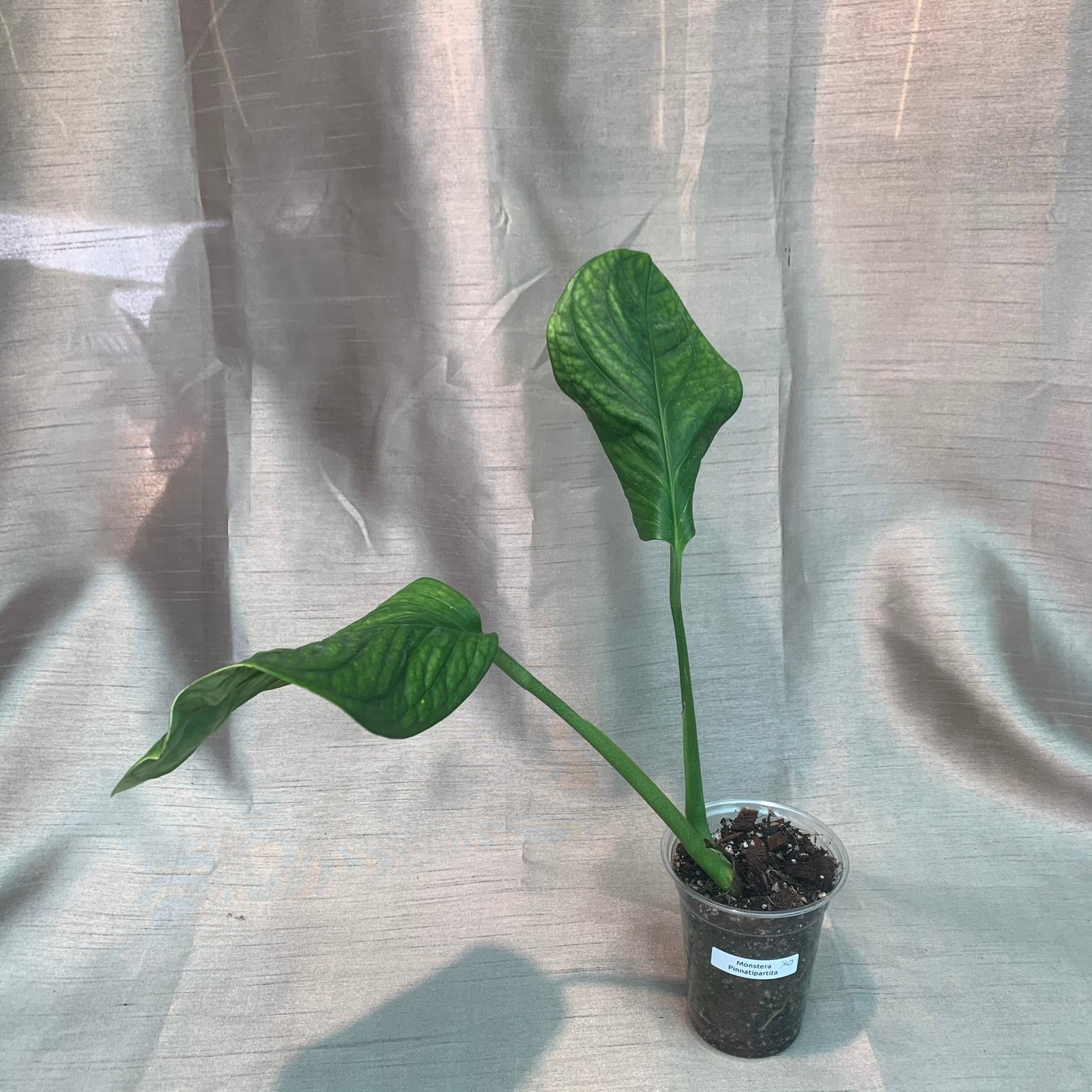 Monstera Pinnatipartita is a rare evergreen and beautiful climbing plant originally from South America that looks similar to Monstera Deliciosa. It has divided leaves when it matures and produces white waxy flowers that along with its aerial roots, make it look wildly.