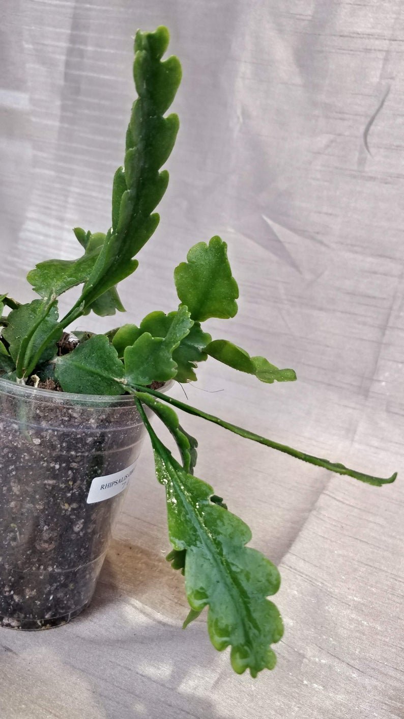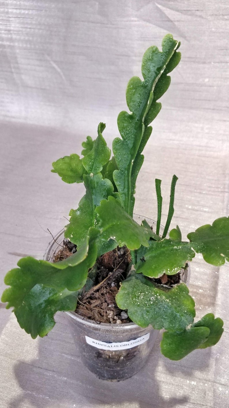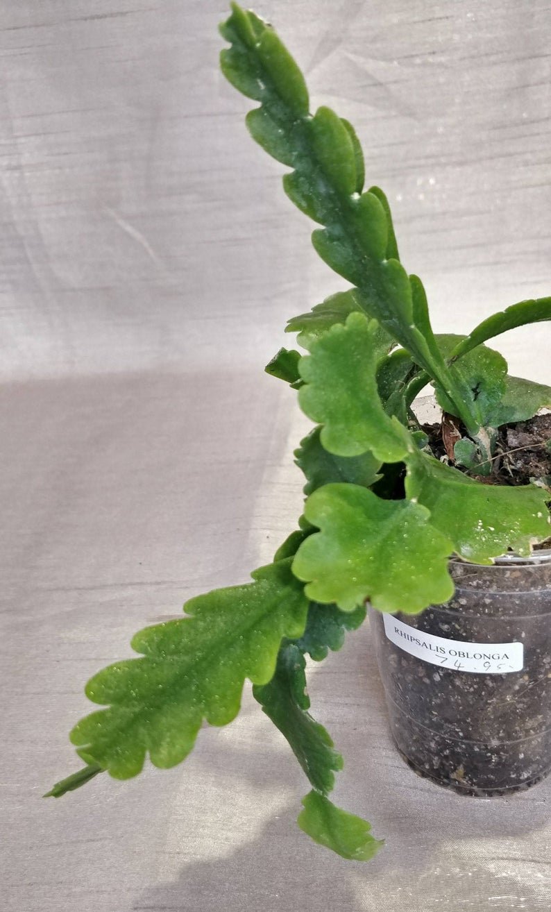 Rhipsalis Oblonga is an epiphyte which reaching 2.50 m long, branching apical or lateral. Stem segments flattened to rarely triangular in longitudinal section, 0.5-0.8 mm diameter, olive-green or light green, slightly succulent, monomorphic, 8-15 cm long.