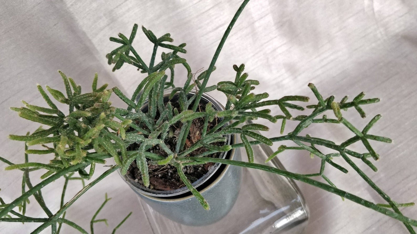 🌿🌿🌿Rhipsalis pilocarpa also called as the hairy-fruited wickerware cactus. The plants main feature is the long green stem that grows in every direction often lighter green around the tips.🌿🌿🌿