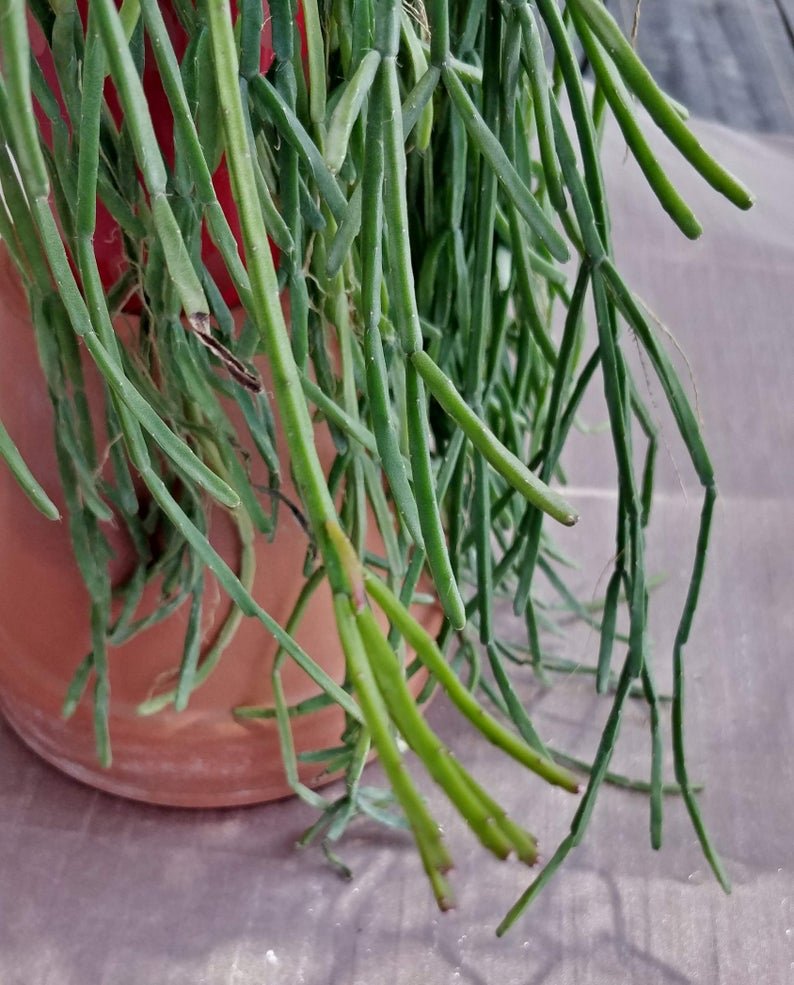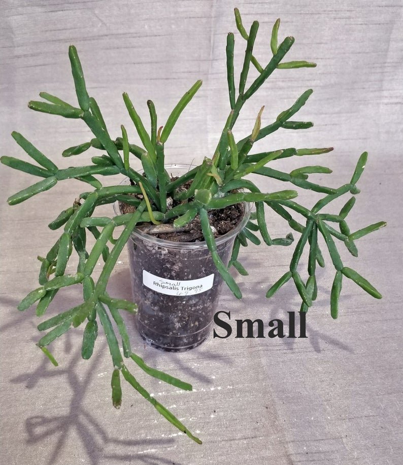 ☀☀Rhipsalis Trigona is a pendant much-branched ephiphytic cactus that can reach upto 6.6 feet in length. the stems segments are stout, 3-angled, often curved or twisted. It has white or pale pink flowers.☀☀