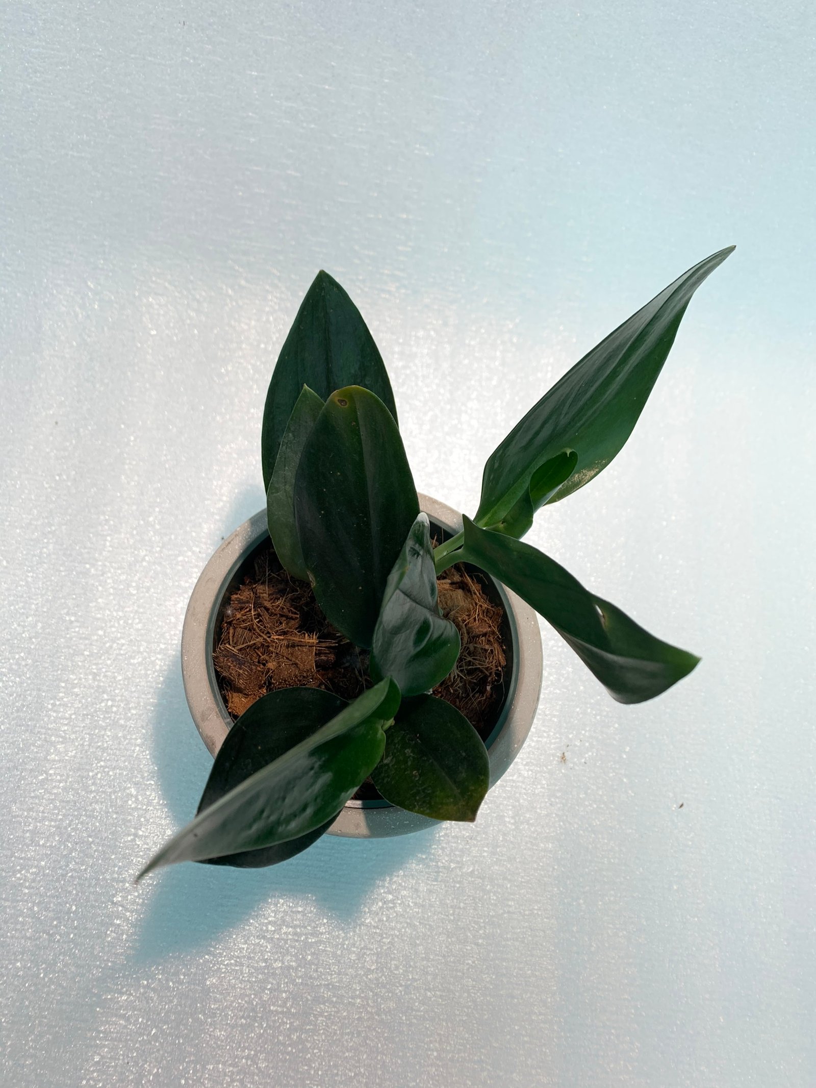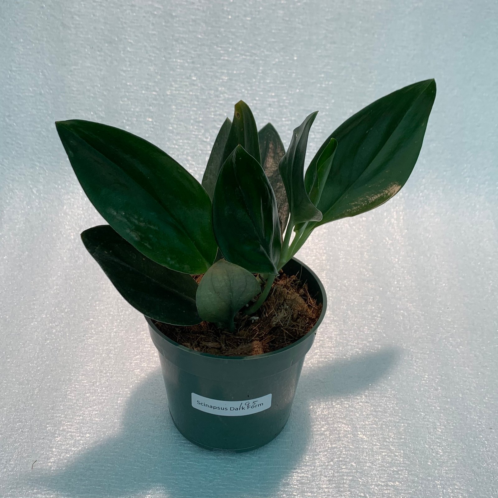 Scindapsus Treubii Dark Form is a rare and beautiful looking vining species of scindapsus with large nearly black leaves.